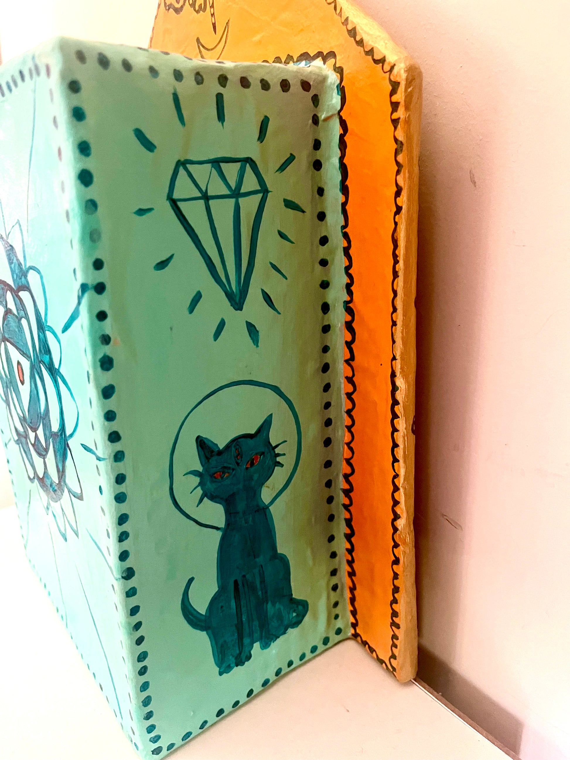 Material: Hand-sculpted paper mâché, painted and sealed for sacred longevity