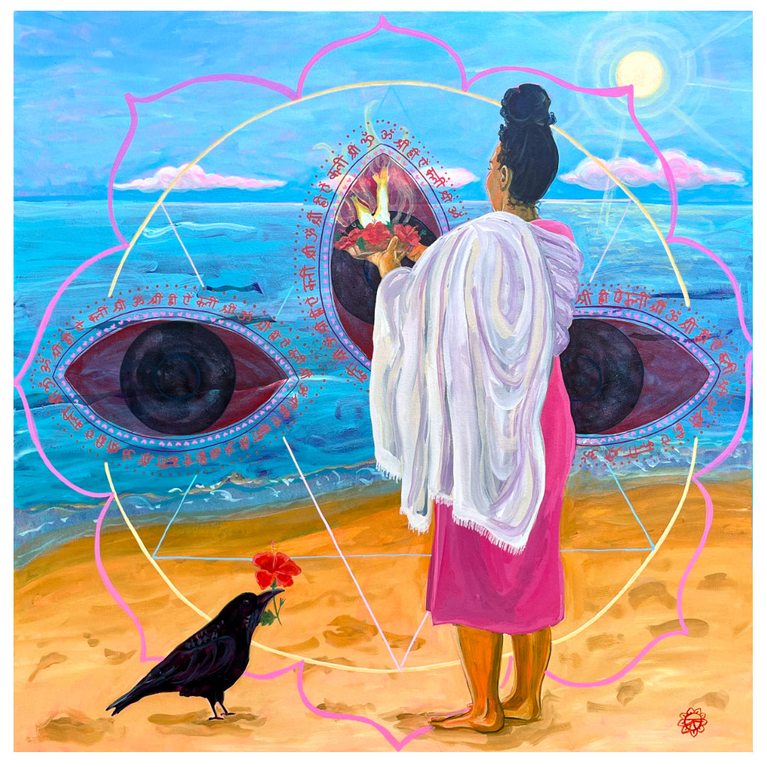This is a contemplative, emotionally rich work of sacred feminine art, blending personal vision with elemental devotion.